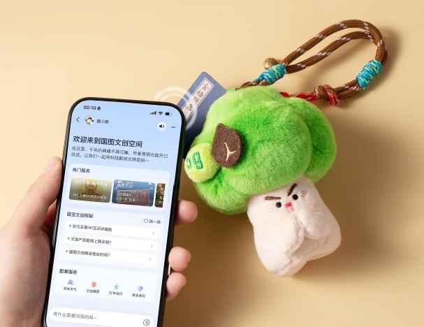 “这款产品可谓颜值内涵双在线。”在国图文创空间,工作人员周李晶正向读者介绍“文冠夺魁”文冠果挂件,“我们从古籍里找灵感,把象征好运的状元果、报喜铃、好运绳、金榜书巧妙融合。同时,黑科技解锁祝福,用支付宝碰一下挂件里的‘金榜题名’小卡片,瞬间解锁专属‘状元签’。还有,每售出一个文冠果挂件,在内蒙古的荒漠化地区就会种下一棵真实的文冠果树。”