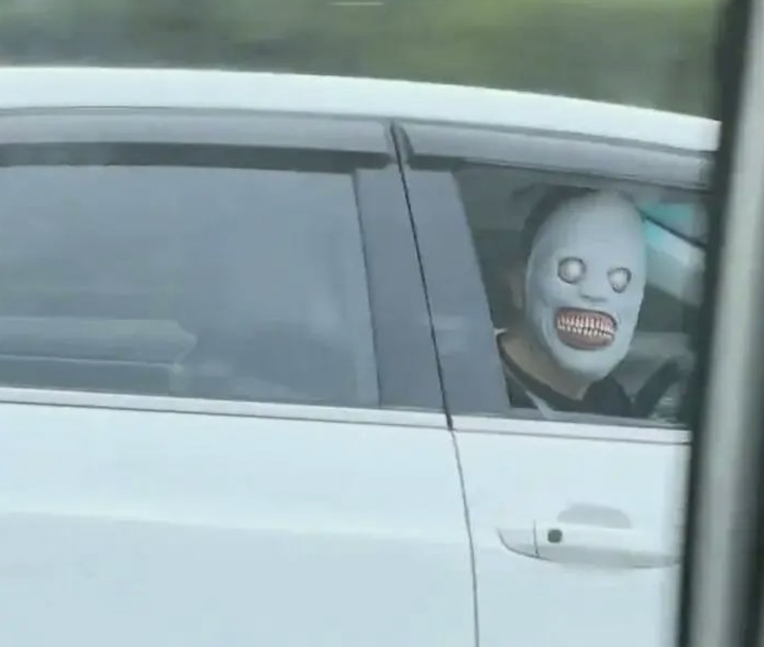 “当时这个人车上的面具是为节日准备的,对方只是觉得好玩戴在头上,拍视频之前也一直戴着的,结果拍视频的这辆车来了,紧接着他就摇下车窗看看对方是不是在拍他,而不是主观去吓唬别人。”
