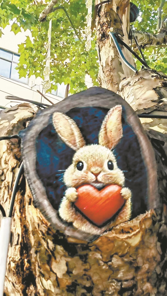在天河穿城而过的郧西,牛郎织女的传说早已融入城市肌理。今年七夕,当地文旅部门创新节庆表达方式,邀请艺术创作者以城市行道树上的树洞为“画布”,将七夕非遗文化元素巧妙融入街头艺术之中。原本因风雨侵蚀、虫害形成的斑驳树洞,如今化身为一幅幅富有情感和故事的画面,成为节日里一道道温暖人心的风景线。