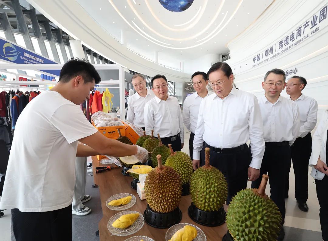 位于鄂州市临空经济区内的中国(鄂州)跨境电商产业园一期已建成,4月30日启动运营后吸引了258家企业注册签约。王忠林走进园区直播基地和选品中心,以及亿玛科技等企业,听取园区规划建设、运营模式等情况介绍,察看直播间和选品展示,详细询问企业对跨境电商发展的意见建议,叮嘱园区加大宣传推介和市场推广力度,引进培育更多外贸龙头企业,大力发展加工贸易,促进跨境电商与航空物流深度融合。王忠林要求省、市有关部门加大支持力度,加强货仓、物流、航司等各类资源要素整合,加快构建集产业孵化、供应链服务、人才培育等功能于一体的跨境电商生态圈。