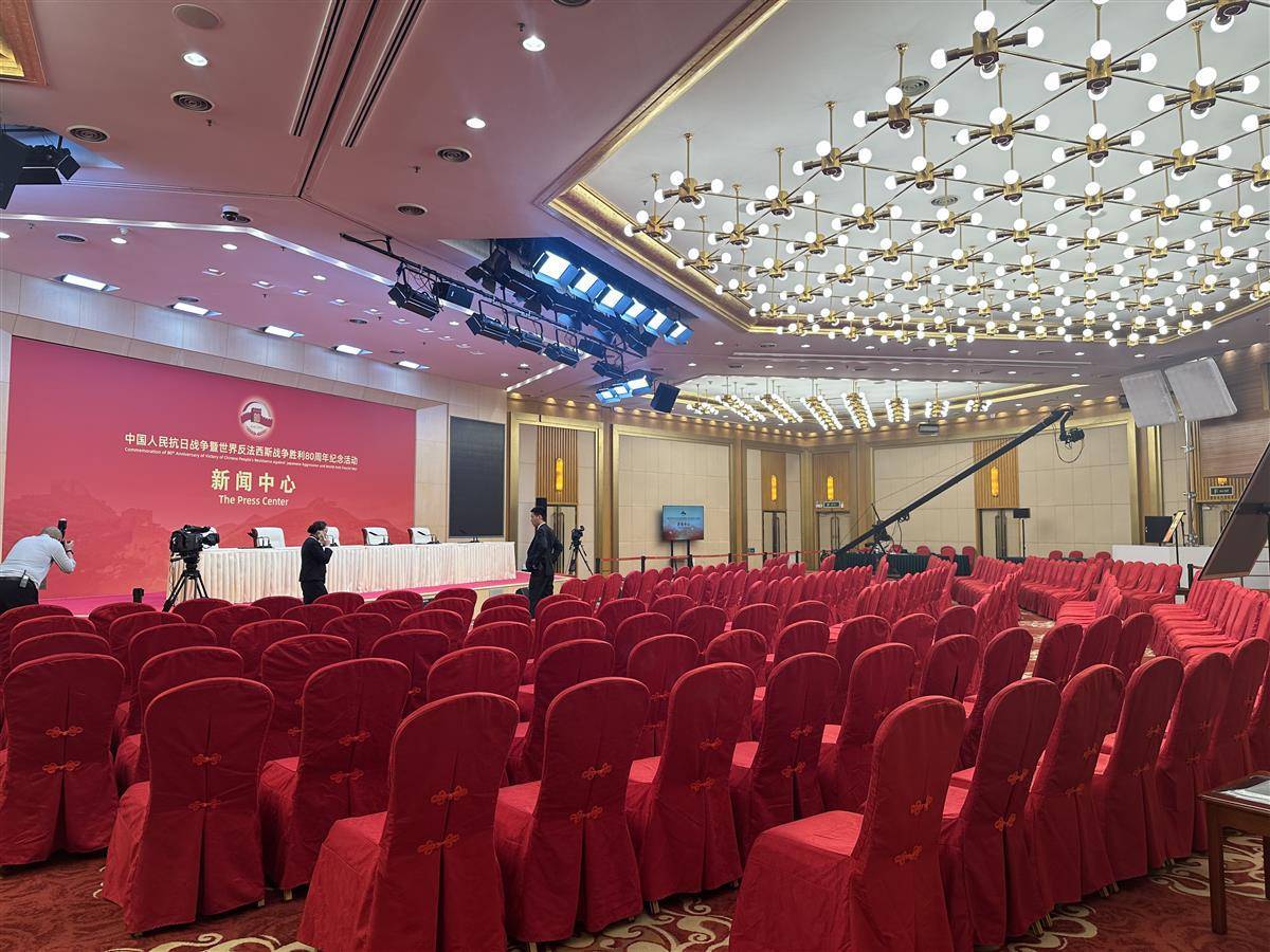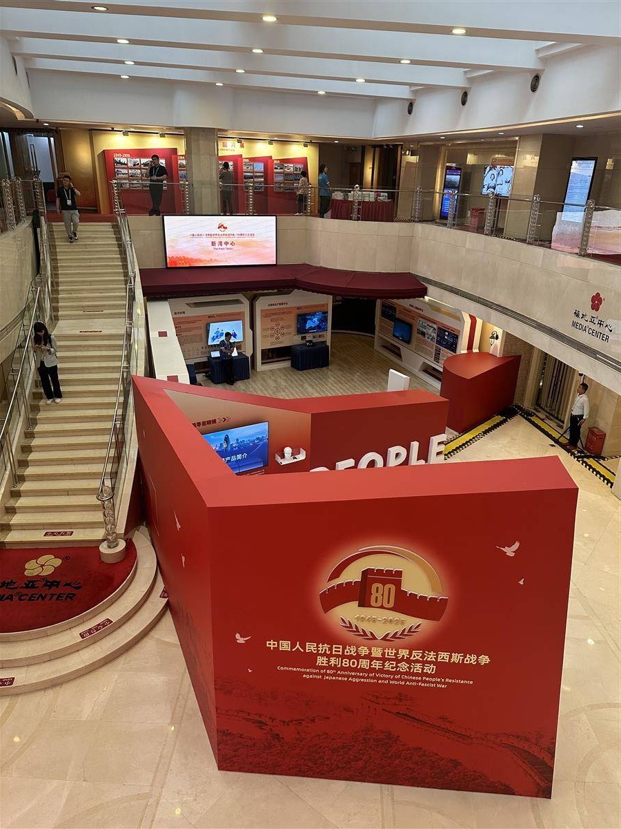 湖北日报讯(记者许旷)8月27日,北京梅地亚中心宾馆,中国人民抗日战争暨世界反法西斯战争胜利80周年纪念活动新闻中心开始对外接待服务。