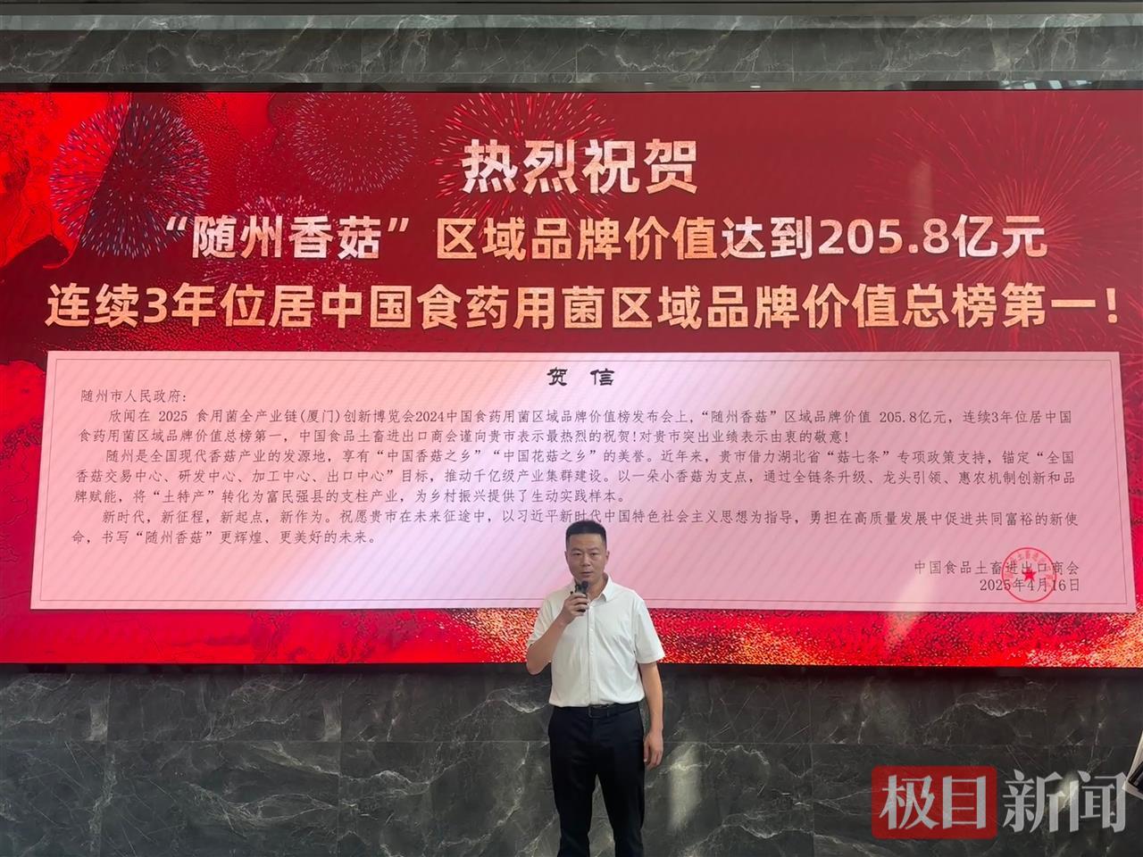 “这香菇‘龟背纹白柄短,肉厚得能掐出鲜汁...…’”8月27日,随县香菇博览馆里,讲解员向记者团展示着各类香菇产品,话里满是骄傲。能有这样优质的香菇产品,得益于随县独特的地理环境、气候条件和资源优势。旁边屏幕上闪亮的一行大字吸引了记者的注意——“随州香菇”区域公用品牌价值205.8亿元,连续三年稳坐全国食用菌地理标志综合价值头把交椅,这个“金疙瘩”的底气,藏在40多年的产业故事里。