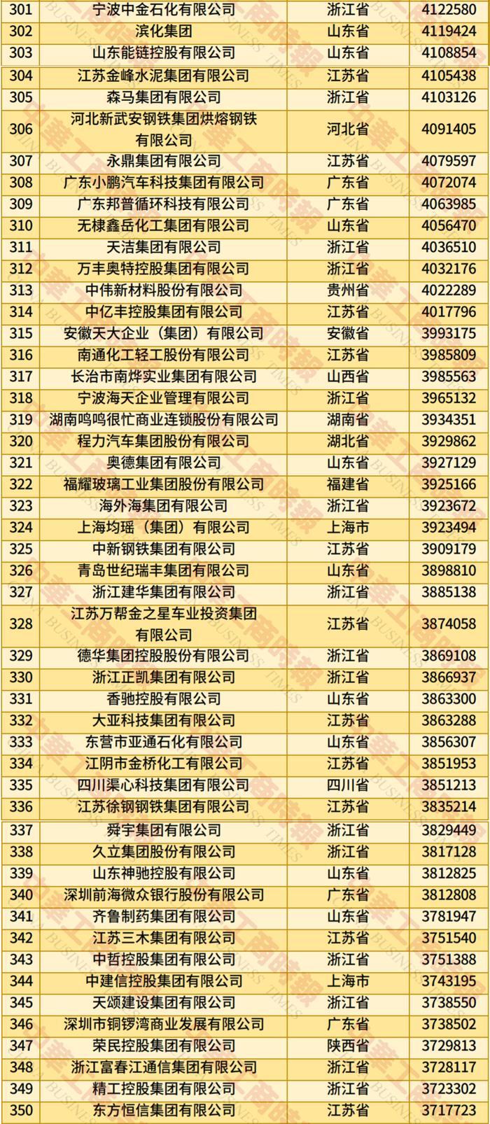 记者注意到,湖北有13家企业上榜。其中入选民营企业TOP100的有卓尔智联集团,其位于榜单46位,营收总额为1624亿;九州通以1518亿元营收额排名第53。此外上榜的湖北民营企业还有恒信汽车集团股份有限公司、稻花香集团、金澳科技(湖北)化工有限公司、骆驼集团股份有限公司、国华人寿保险股份有限公司、程力汽车集团股份有限公司、福星集团控股有限公司、华新水泥股份有限公司、荆门市格林美新材料有限公司、湖北鑫资再生资源集团有限公司和宝业湖北建工集团有限公司。