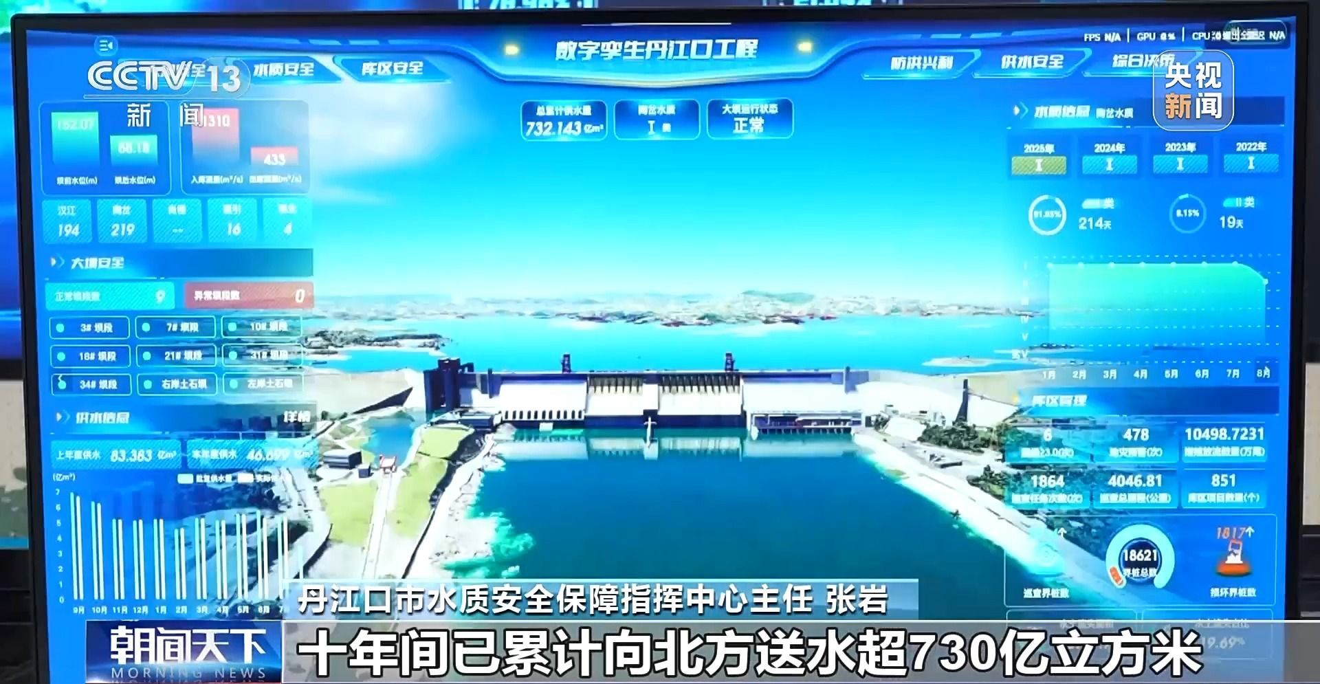 湖北省丹江口市水质安全保障指挥中心主任 张岩:如今,丹江口水库水质长期稳定在地表水Ⅱ类及以上,107项水质监测指标达到了直饮标准,十年间已累计向北方送水超730亿立方米。