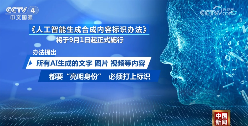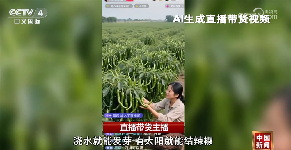 这是某网络平台直播卖货时的画面,背景视频还出现了农户站在快要没过膝盖的深水里采摘辣椒的场景。经记者调查,画面是AI合成视频,辣椒产地的农技专家也直言这些是虚假宣传。针对类似的情况,《人工智能生成合成内容标识办法》将于9月1日起正式施行。办法提出,所有AI生成的文字、图片、视频等内容都要“亮明身份”,必须打上标识 。