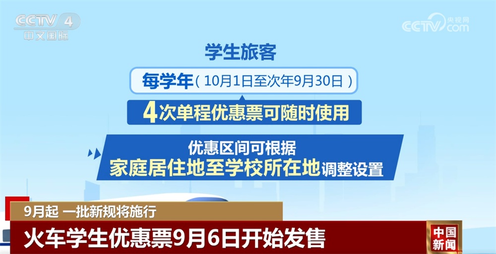目前,铁路12306正在组织系统优化测试,相关优惠车票预计将于9月6日开始发售。