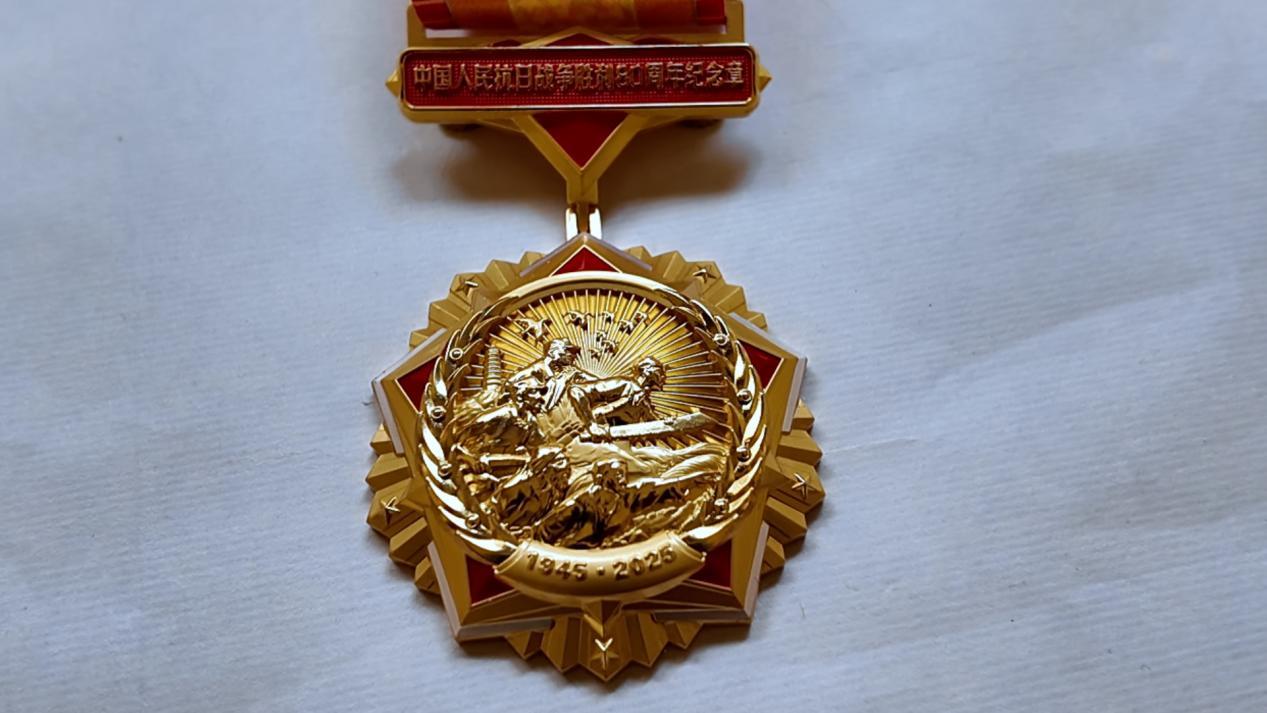 那枚中国人民抗日战争胜利80周年纪念章,