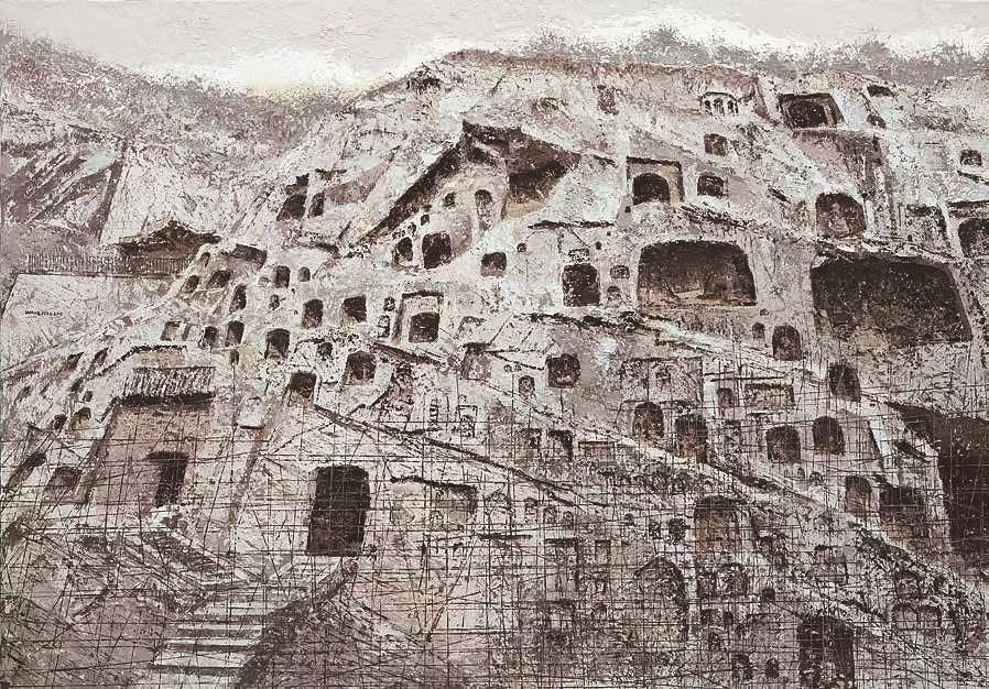 王霄 《为西山石窟搭建脚手架》(油画)