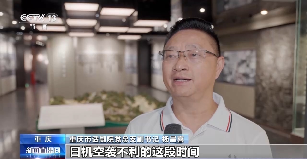 重庆市话剧院党总支副书记 杨昌喜:戏剧界根据周总理指示,利用重庆每年10月至次年5月的雾季,日机空袭不利的这段时间,大规模开展演出,一年一度的“雾季公演”就这样应运而生。因为电影业受当时战争影响,大批电影明星进入话剧领域,无形中提高了话剧的质量与影响力。