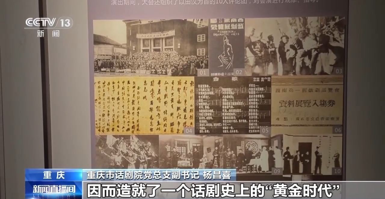 重庆市话剧院党总支副书记 杨昌喜:在那一时期,话剧从“新青年”们进行文学探索与自我表达的“小众艺术”成为一种“下沉”到中国社会的“艺术的武器”,成为一种特殊时代的“大众文化”,因而造就了一个话剧史上的“黄金时代”,称为“抗战话剧”。