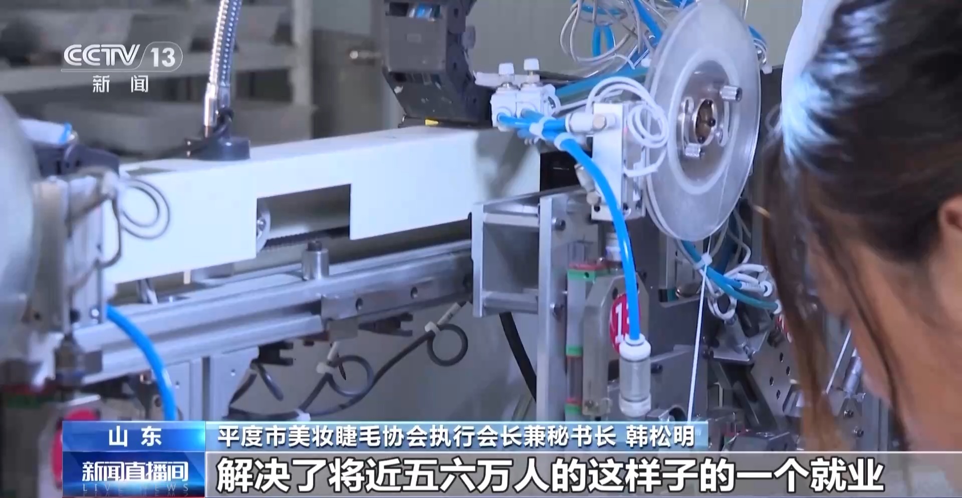 平度市美妆睫毛协会执行会长兼秘书长 韩松明:目前的话,是将近有五千多家市场主体,两万多个加工点,解决了将近五六万人的就业。简单说,就平度每十五个人里面有一个人跟睫毛产业有关系。所以,睫毛产业是一个富民强市的产业。