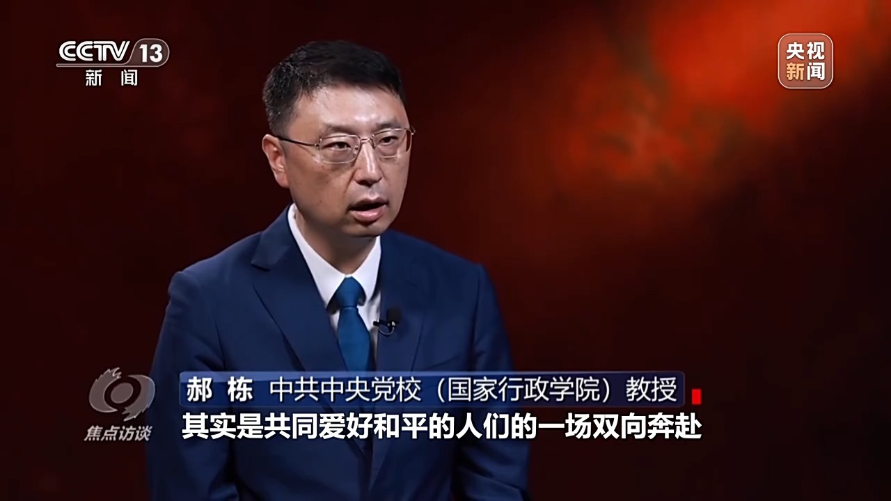 中共中央党校(国家行政学院)教授 郝栋:世界反法西斯战争,其实是共同爱好和平的人们的一场双向奔赴。一方面是双方不断认识,不断融合,形成世界反法西斯强大力量的过程;另外一方面在这个过程中,其他国家、其他政党、其他国家的人民也在认识中国共产党在世界反法西斯战争中所起到的重要作用。