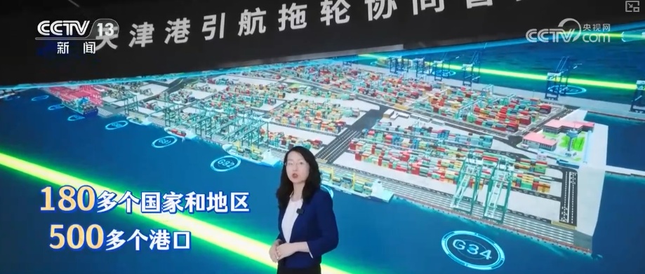 利用数字孪生技术,在引航智控中心可以直观实时地感受天津港的忙碌。昼夜不停的天津港与世界180多个国家和地区的500多个港口保持着贸易往来,连续多年跻身世界港口前十强。