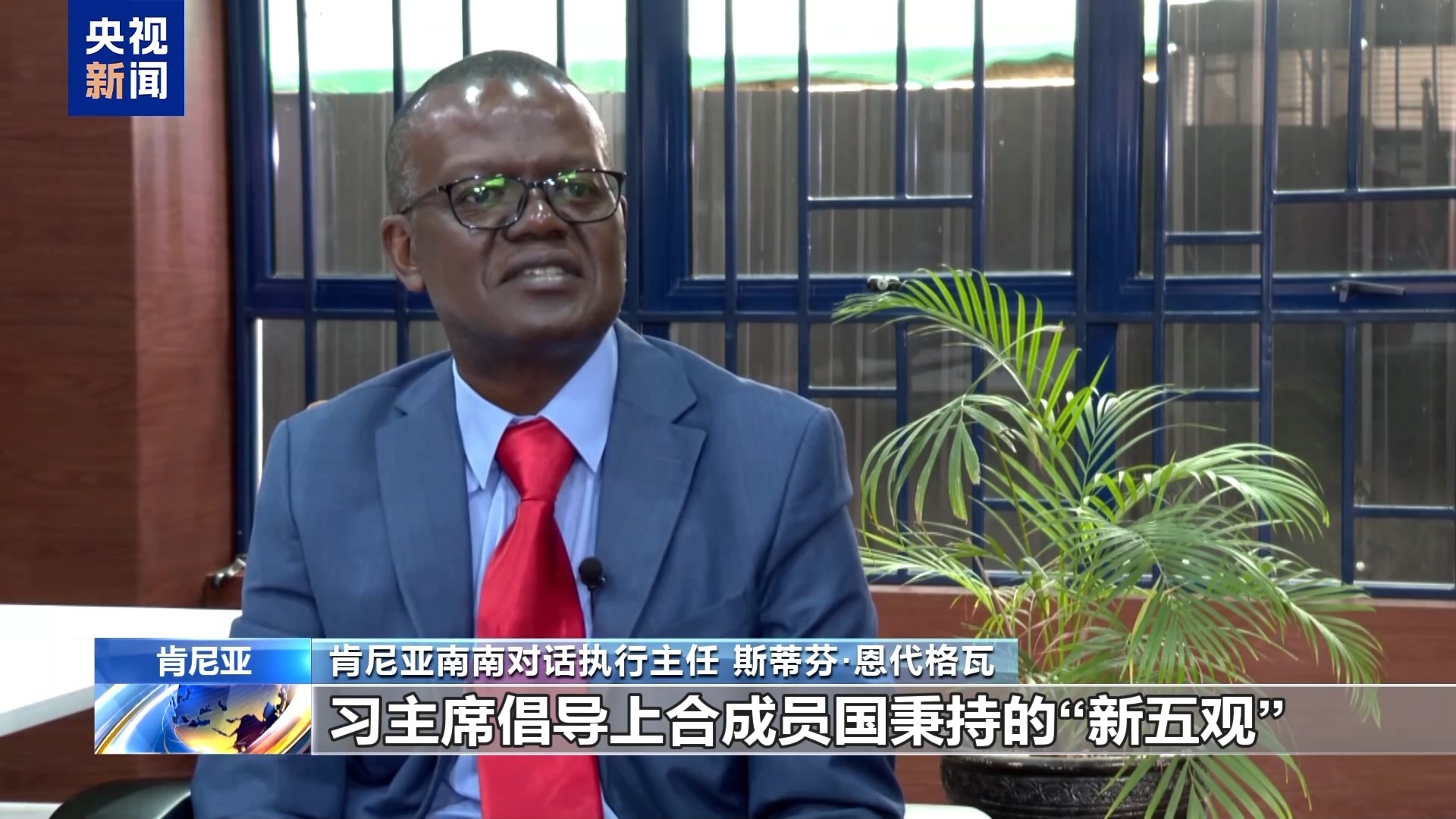 肯尼亚南南对话执行主任 斯蒂芬・恩代格瓦:习主席倡导上合成员国秉持的“新五观”,也就是发展观、安全观、合作观、文明观和全球治理观。超越了文明冲突、冷战思维和零和博弈。肯尼亚在安全领域面临的极端主义威胁,在经济领域面临的农业发展瓶颈,都能从中国倡议中找到解决方案的思路。这正是习主席提出的重要倡议,为非洲带来的实际价值。