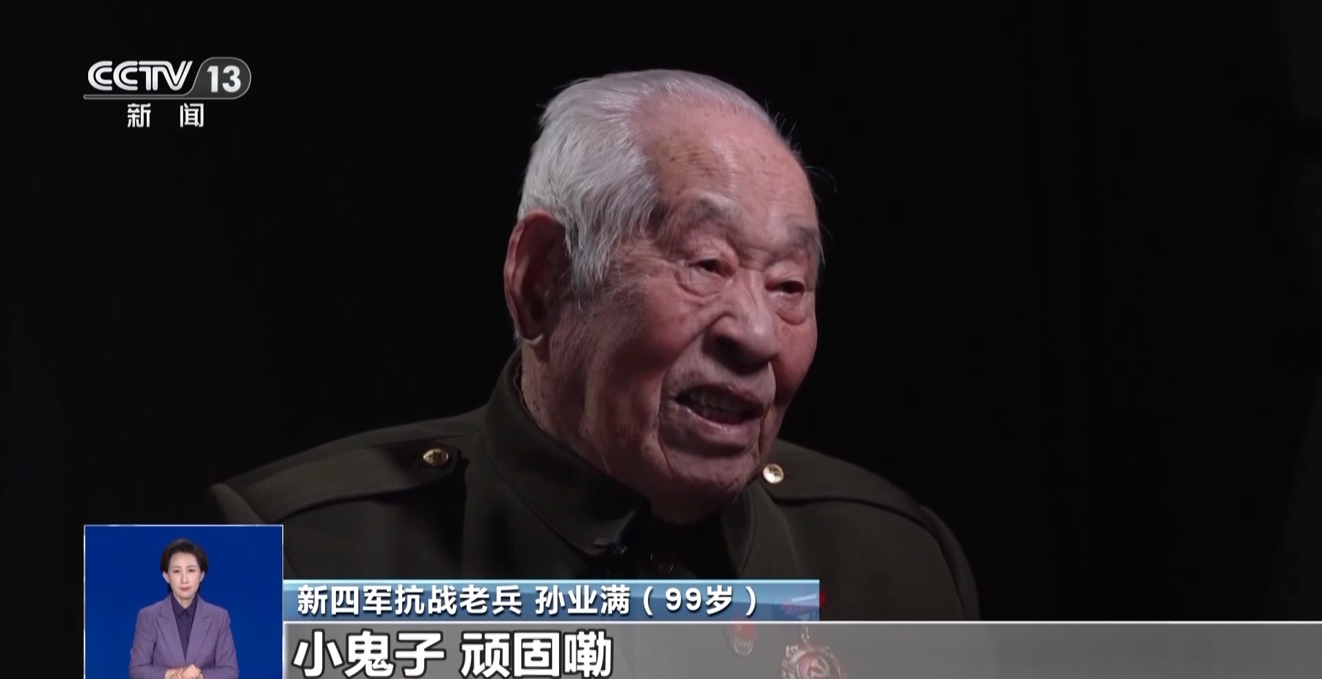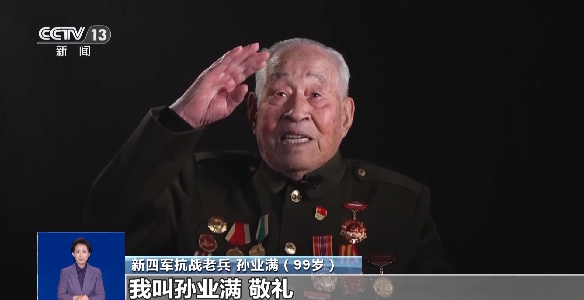 新四军抗战老兵 孙业满:我是共产党党员之一,大海水一滴,能叫我出力的,我能做到的,我是用尽一切力量。我叫孙业满,敬礼!