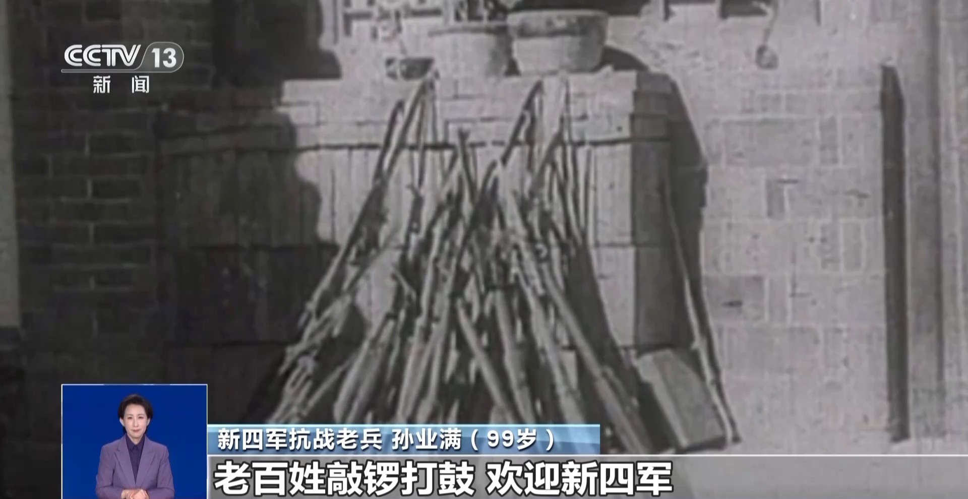 新四军抗战老兵 孙业满:集中一个排的手榴弹,我们三四个人打,扔到碉堡里头,把敌人炸得血肉横飞啊,我们一共缴了四五十支枪。回到了村庄,老百姓敲锣打鼓,欢迎新四军。老百姓也高兴,军队也高兴,过了一个好年。那是我们第一次当兵打的仗。