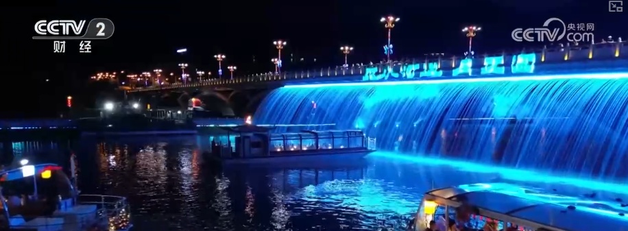 “夜”经济也在夏天升腾着烟火气。在湖南邵阳,一场融合了“行船游赏”“沉浸式情景剧场”的水上苗乡数字幻游之旅就此开启,金黄稻浪、丰收盛景等一一呈现。