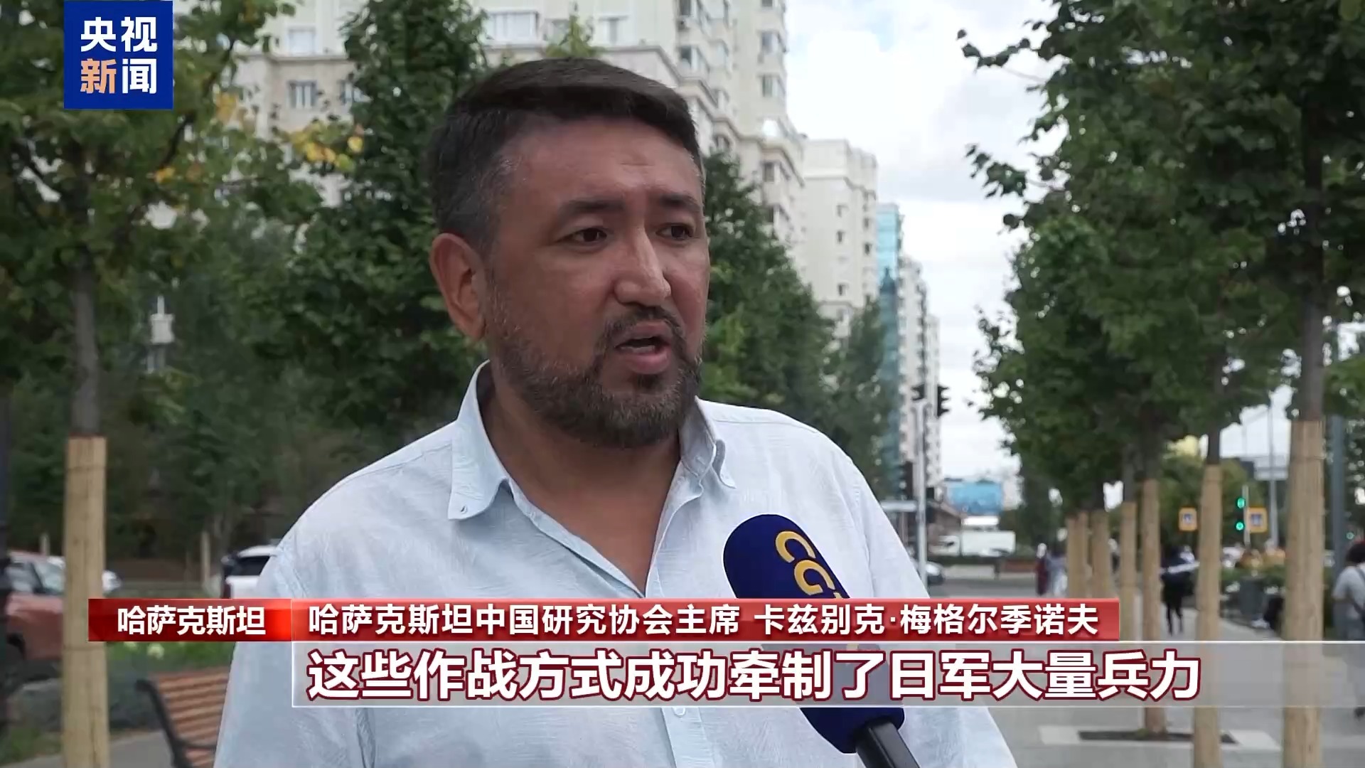 哈萨克斯坦中国研究协会主席 卡兹别克·梅格尔季诺夫:中国人民早于其他盟军在本土展开了艰苦卓绝的战斗,中国对二战胜利的战略贡献至关重要。中国在战争初期就清醒认识到抵御日本侵略的重要性,开展了游击战、防御战和持久战,这些作战方式成功牵制了日军大量兵力。日本至今仍未承认在中国犯下的罪行。正因如此,我们必须清醒认识到,任何历史悲剧都应被正视,中国在二战中的贡献更应得到充分承认。