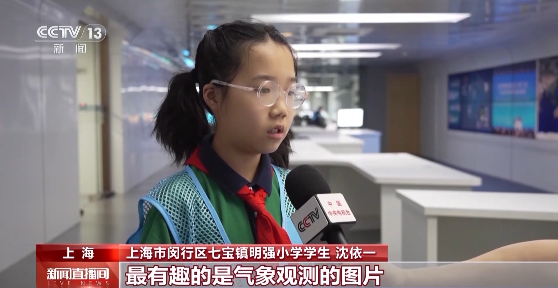 在上海市气象局,来自七宝镇明强小学的同学们,正在了解我国新近发布的全民早期预警中国方案“妈祖”。随后,同学们还纷纷化身“气象小主播”,走进演播厅,亲身体验气象节目制作与播报的全过程。