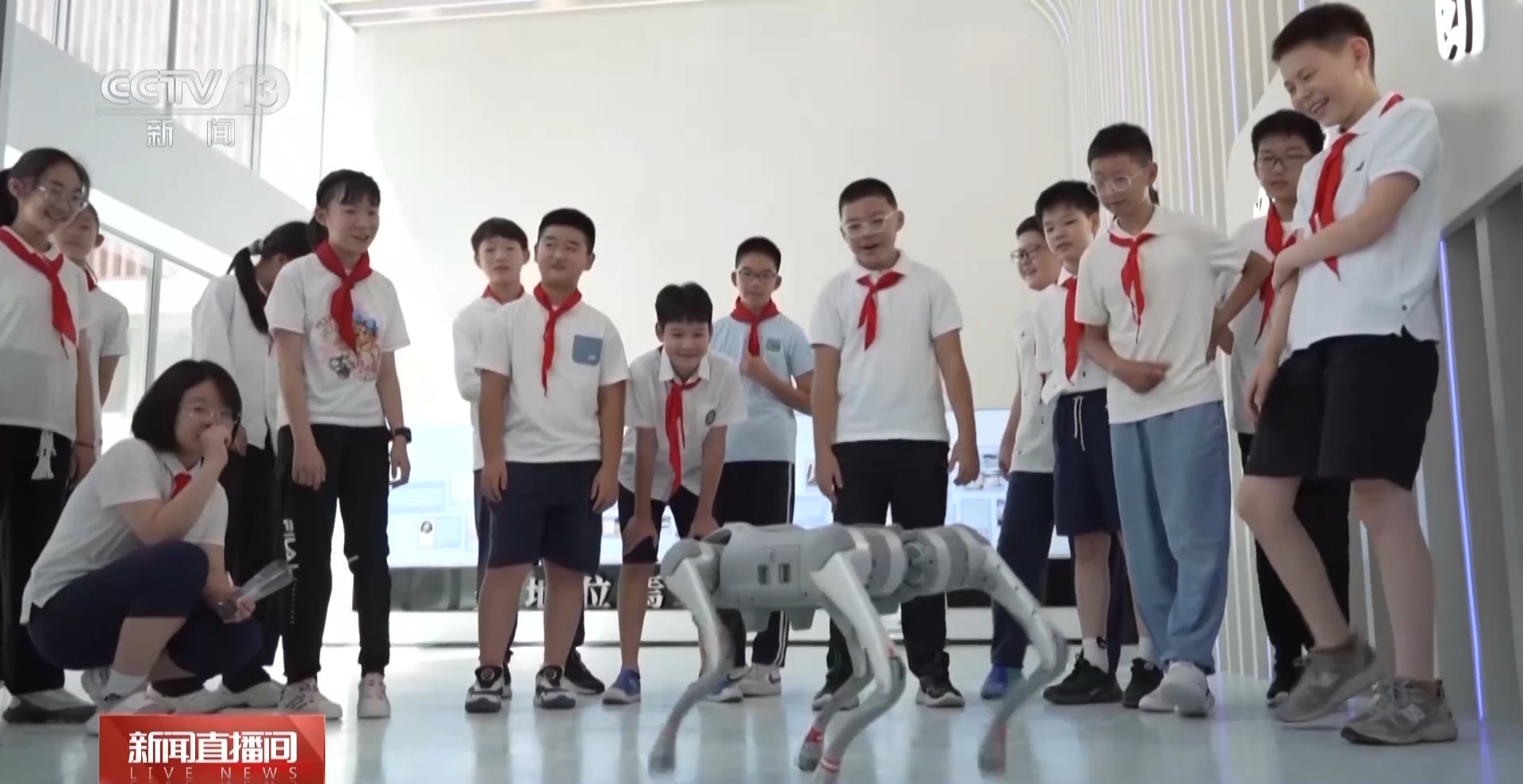 在上海市位育附属徐汇科技实验中学,一场科技感十足的AI盛宴正在上演。与机器人共舞,跟机器狗互动,感受巨幕观影眼镜、与AI过招下棋,每一项体验都让学生收获满满。