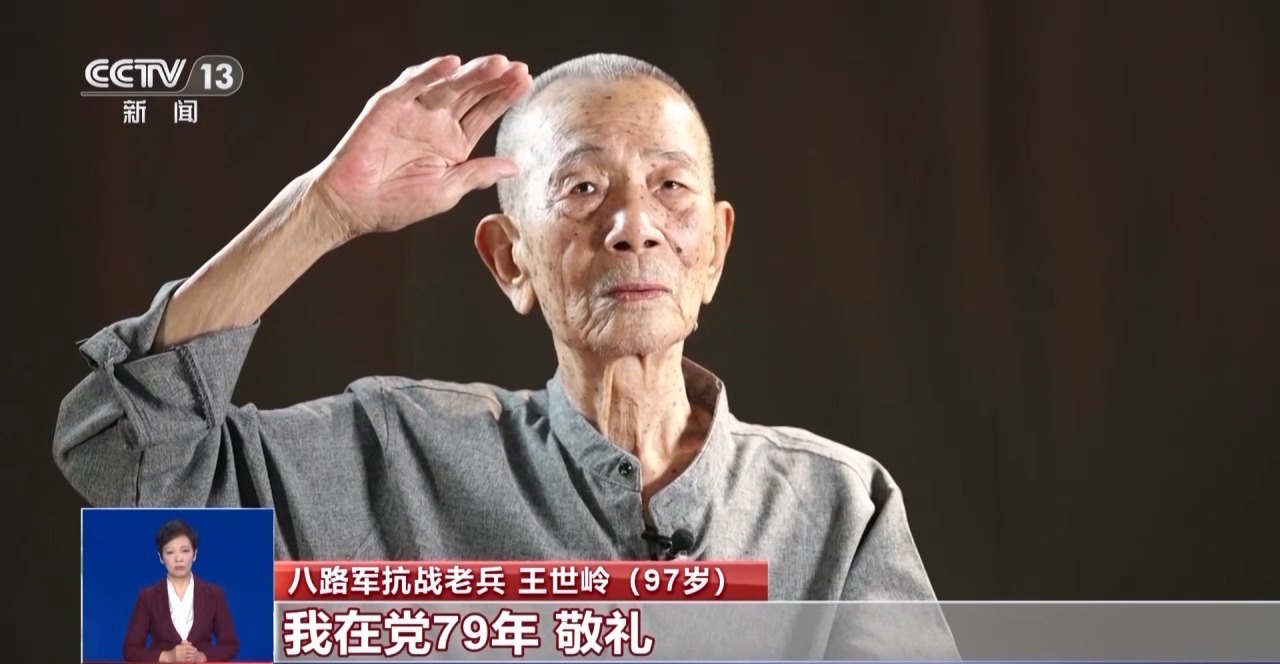 王世岭:我叫王世岭,今年97岁,我在党79年,敬礼。