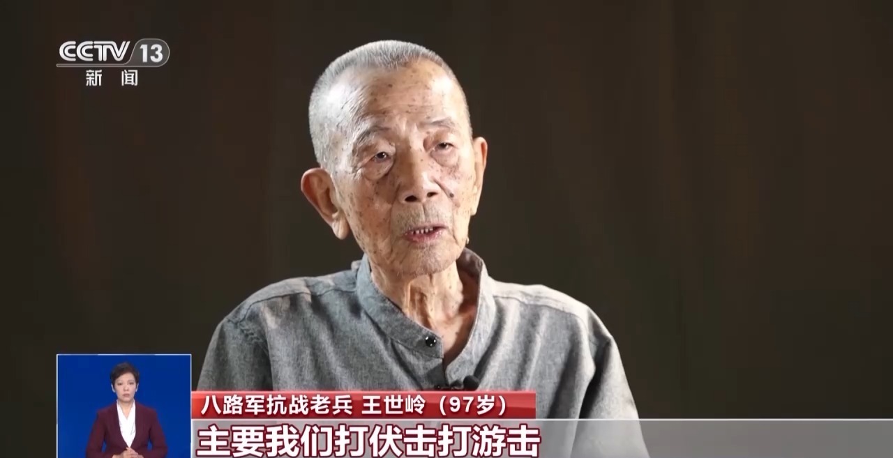 八路军抗战老兵 王世岭:一直从京汉铁路到张家口,靠山里,我能打我就打,不能打就山里退。主要打伏击打游击,炮弹打下来了,正打脚底下,它没爆。它要爆炸我就完了。子弹没打上我,可是我这锁骨摔折了。