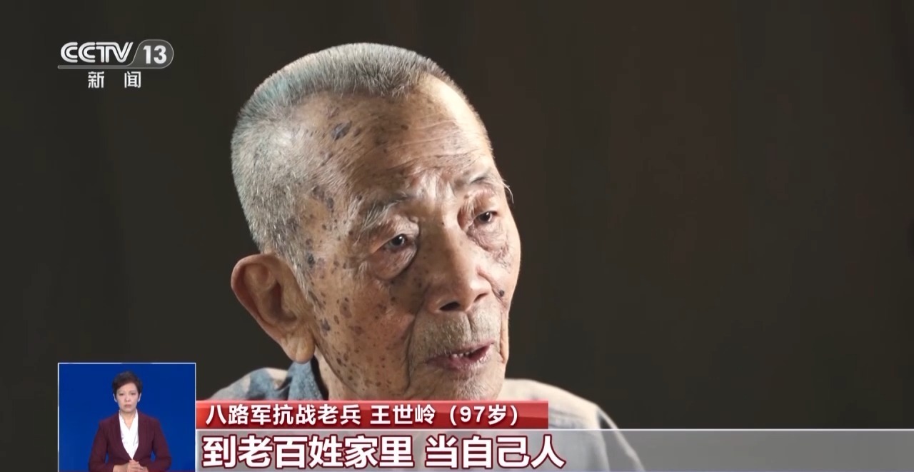 王世岭:老百姓啊!八路军跟老百姓是一家人啊。我给你讲。当兵的时候,如果真是给部队失散了,到老百姓家里,当自己人。我们胜利靠人民,我们就靠人民,这是我们的根本利益。我们的军队是人民的军队,为人民打天下保天下。
