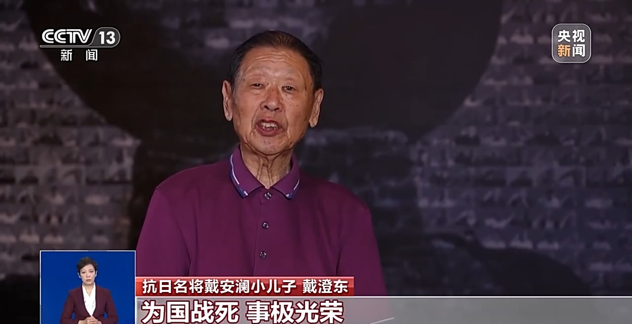 抗日名将戴安澜小儿子 戴澄东:亲爱的爸爸戴安澜将军,今年是中国人民抗日战争胜利80周年,国家很安定,社会很安全,人民生活幸福起来,这些都是你在过去所向往的事情,现在我们都实现了。我们全国人民正在共同努力,为中华民族伟大复兴作出自己的贡献。所以爸爸你放心吧,国家还会更好发展,人民还会更好幸福。