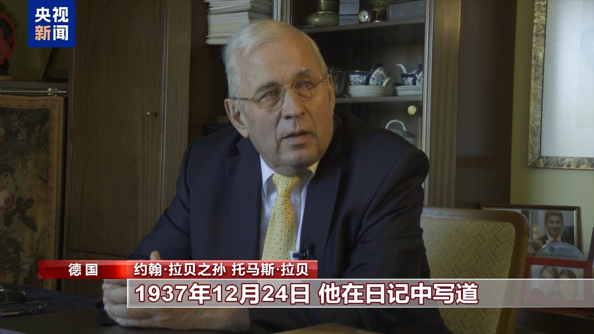 约翰•拉贝之孙 托马斯•拉贝:1937年12月24日,他在日记中写道,“我收到的最好的节日礼物,是我家,我的花园和德国学校里保护的600多名中国难民的生命”。