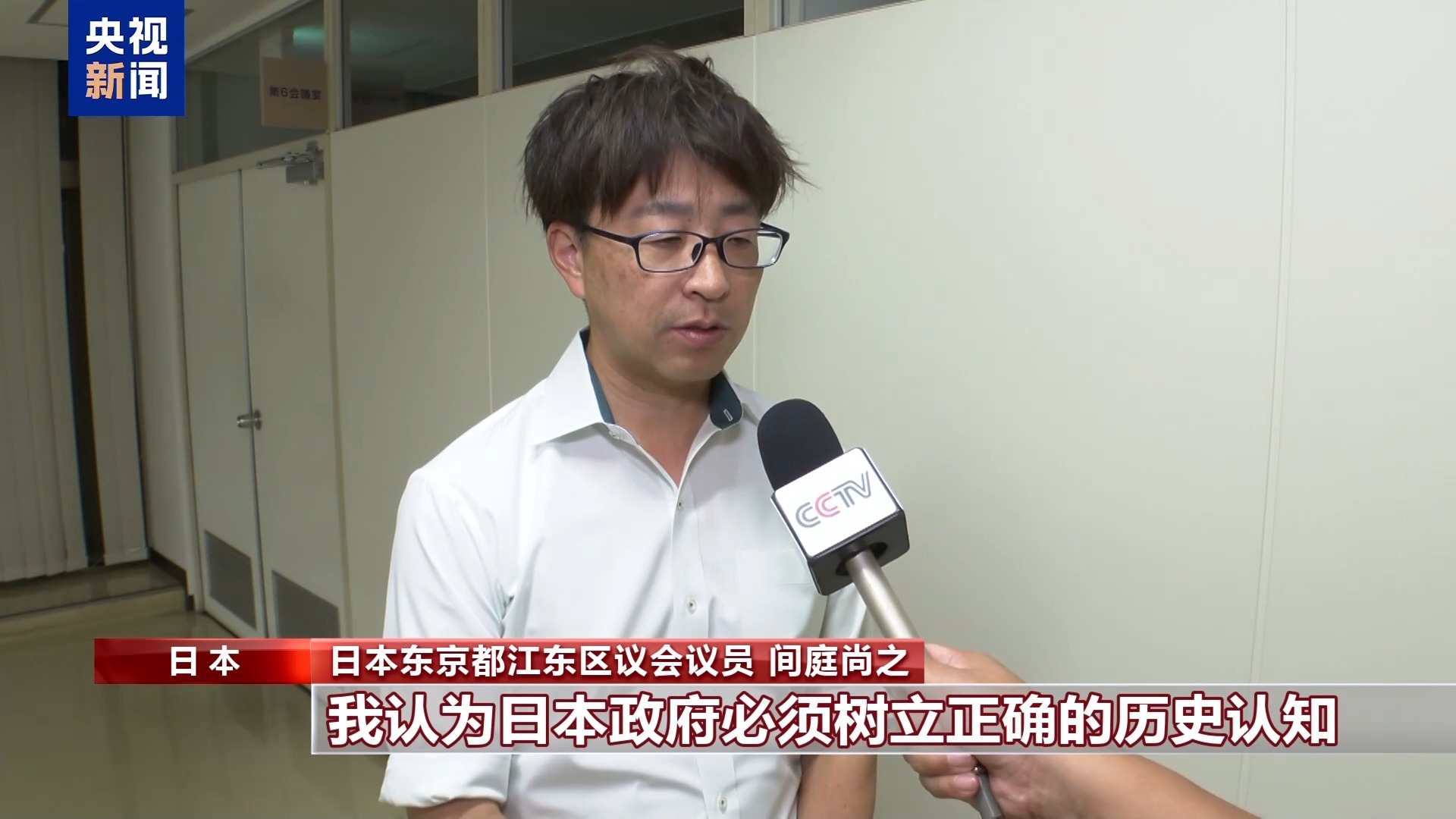 日本东京都江东区议会议员 间庭尚之:我认为日本政府必须树立正确的历史认知。日本对亚洲各国实施了加害行径,让亚洲人民遭受了极其残酷的苦难,日本政府必须清醒地认识到这一点,并且通过历史教育,把这一点传达给下一代的孩子们。