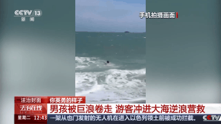 男孩被巨浪卷走 游客冲进大海逆浪营救