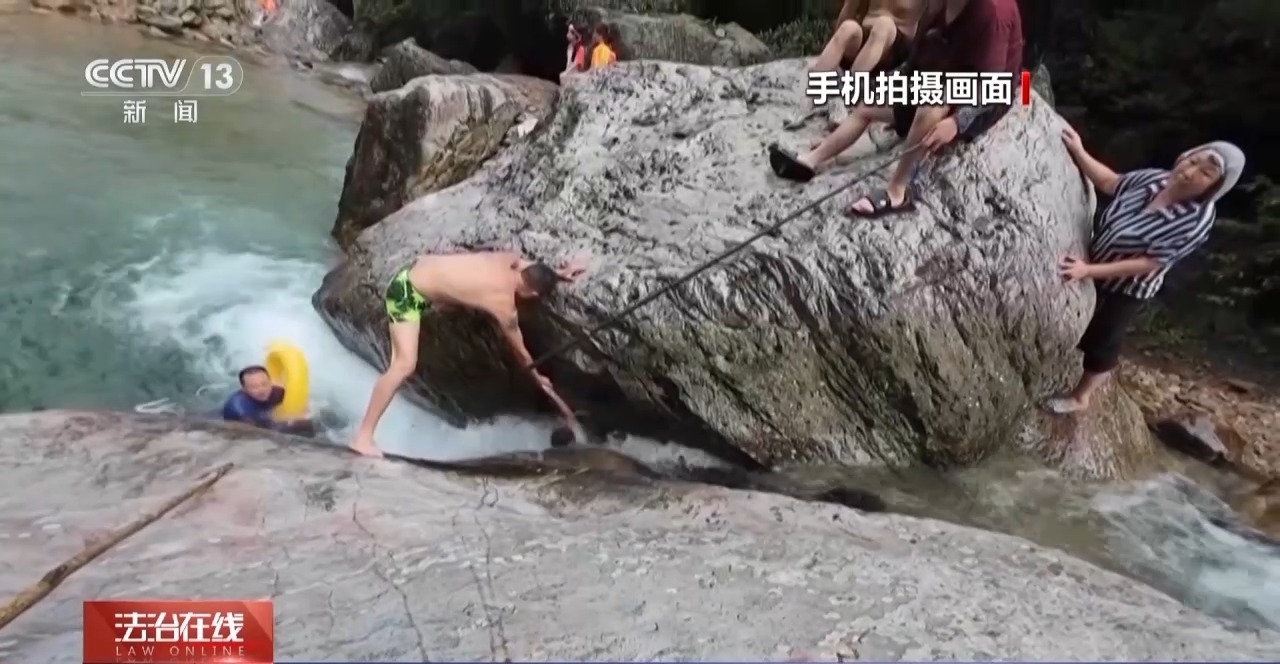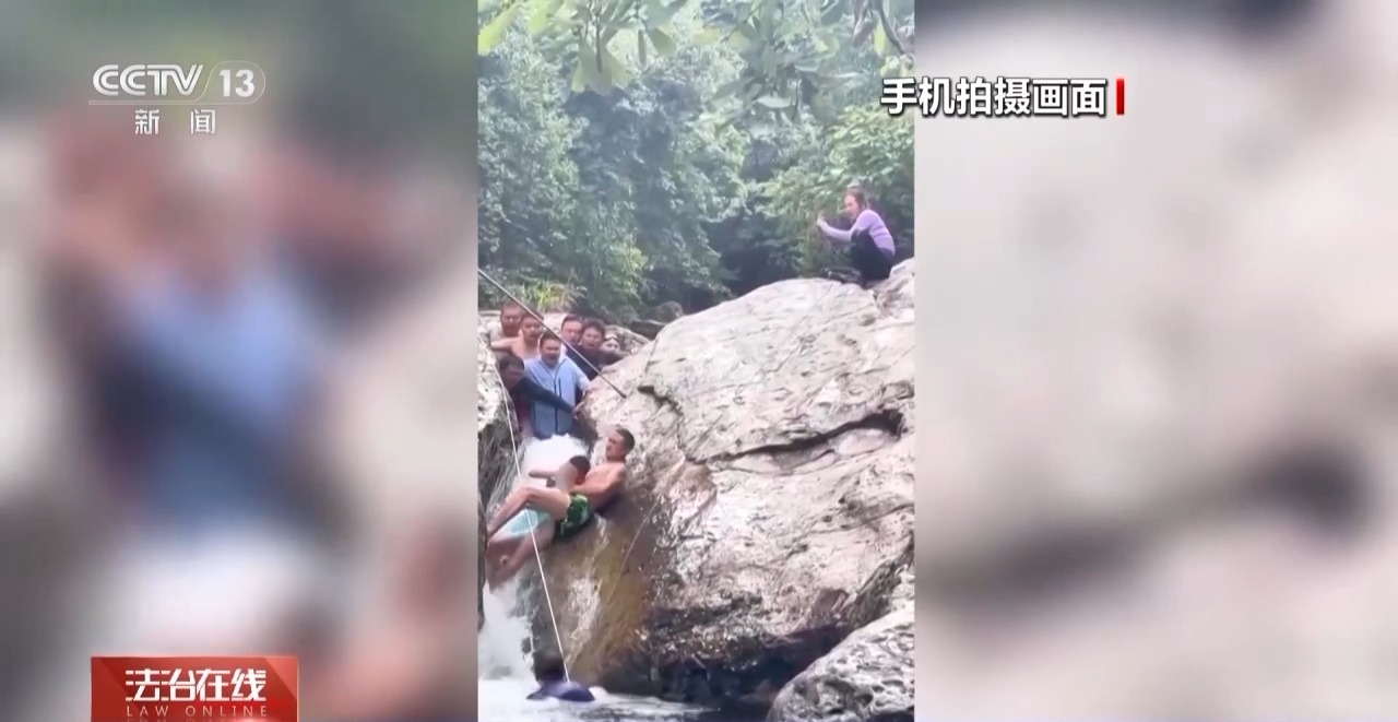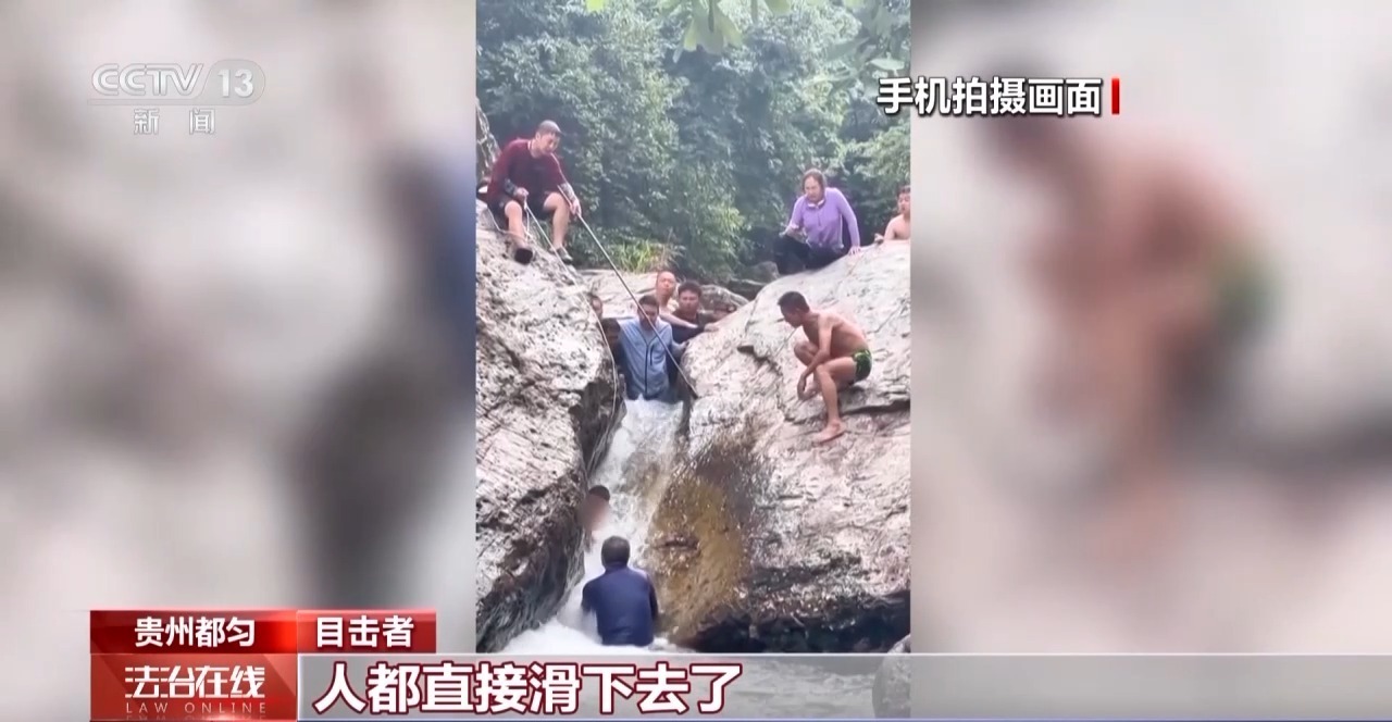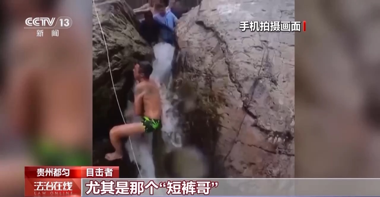 目击者:因为那个石头特别陡,视频里也能看出来,使劲拉绳子的时候,人都滑下去了。