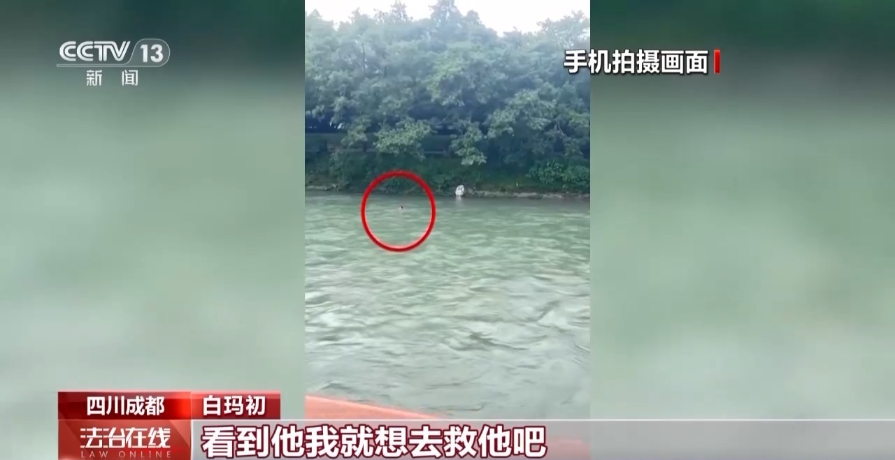 白玛初:我是在听到之后才看到他的,他在河对面,身体被水冲来冲去,感觉要被冲走了,感觉他很慌,没力气,脸很白,看到他我就想去救他。