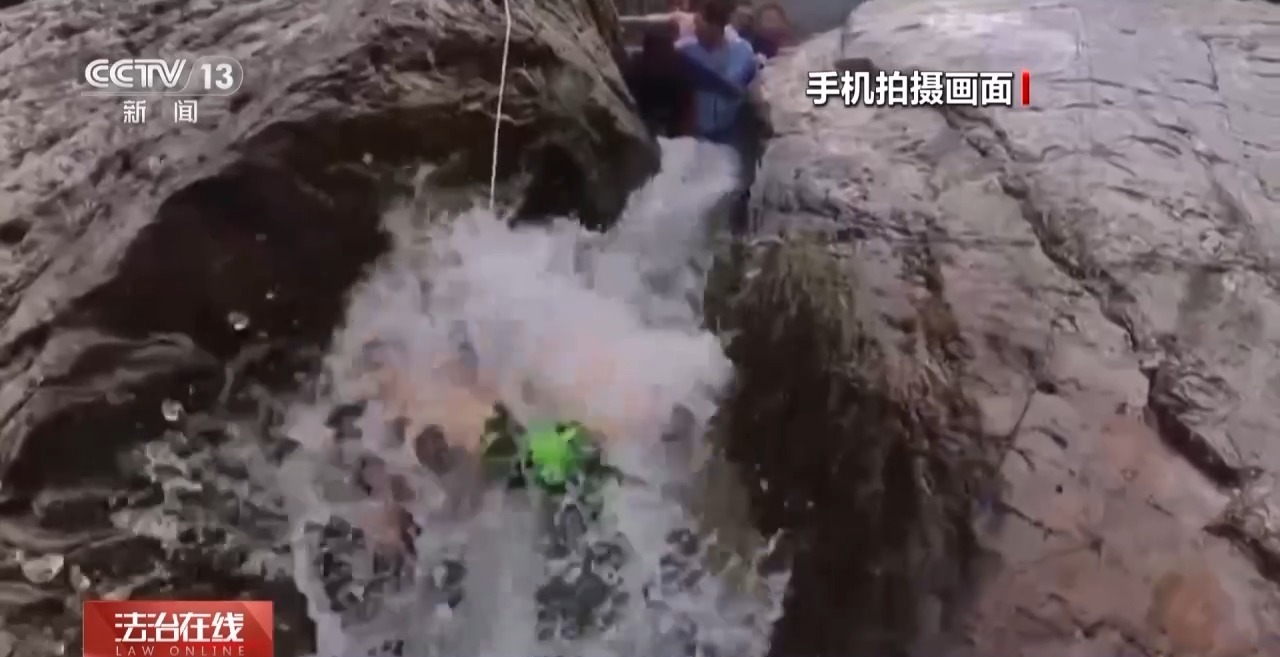 从现场目击者拍摄的视频中可以看到,一个10岁左右的小男孩被夹在水流湍急的石缝中动弹不得,汹涌的溪水时不时没过男孩的口鼻,眼看已经没有了力气,在场所有人都十分着急,想要将男孩赶紧救出来,却一直没有成功。