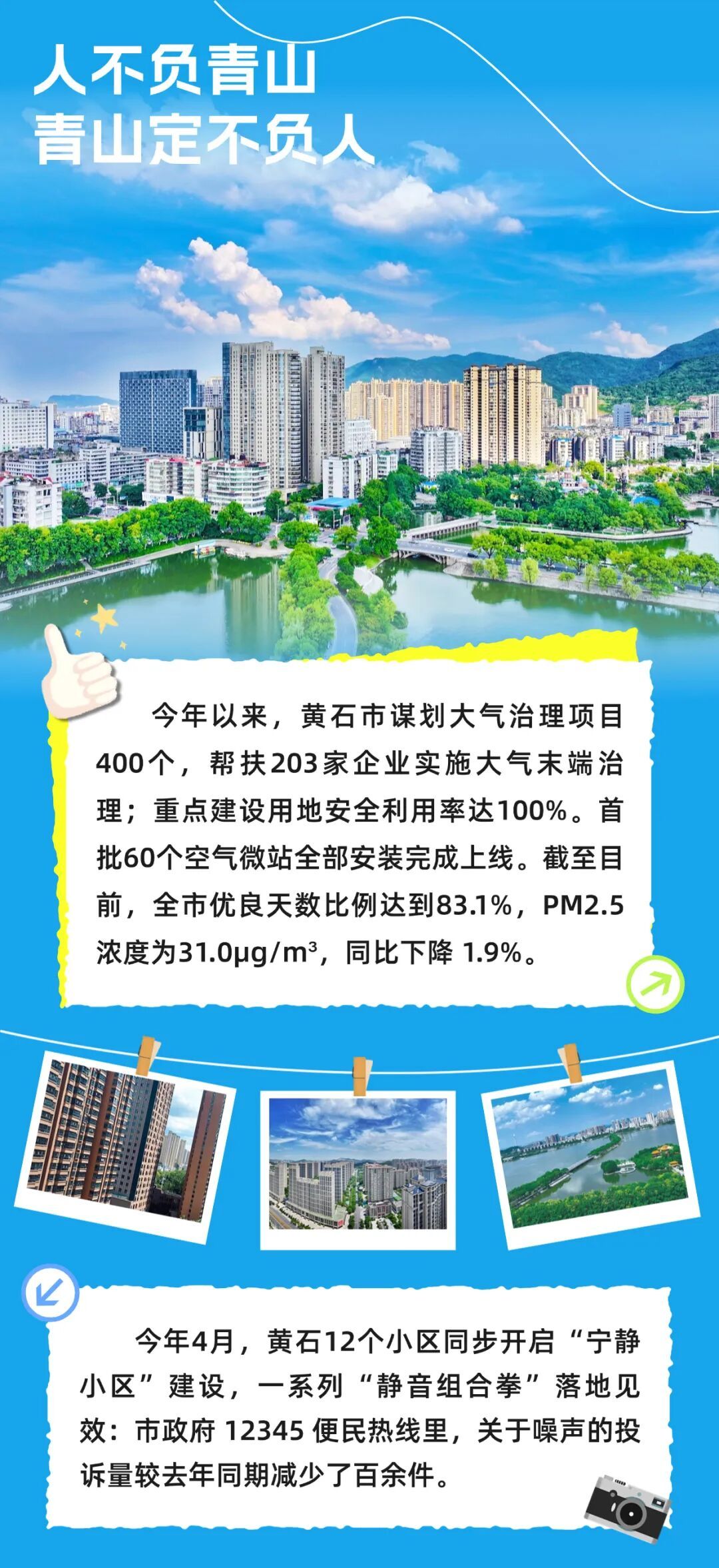一座公园如同一扇窗棂,映射出黄石生态治理一以贯之的行动。为了让这方“生我养我”的土地宜居宜业、宜学宜游,近年来,黄石投入了朴素情怀和“真金白银”,开展环境攻坚提升行动,持续治气、治水、治土、治废、治噪等。
