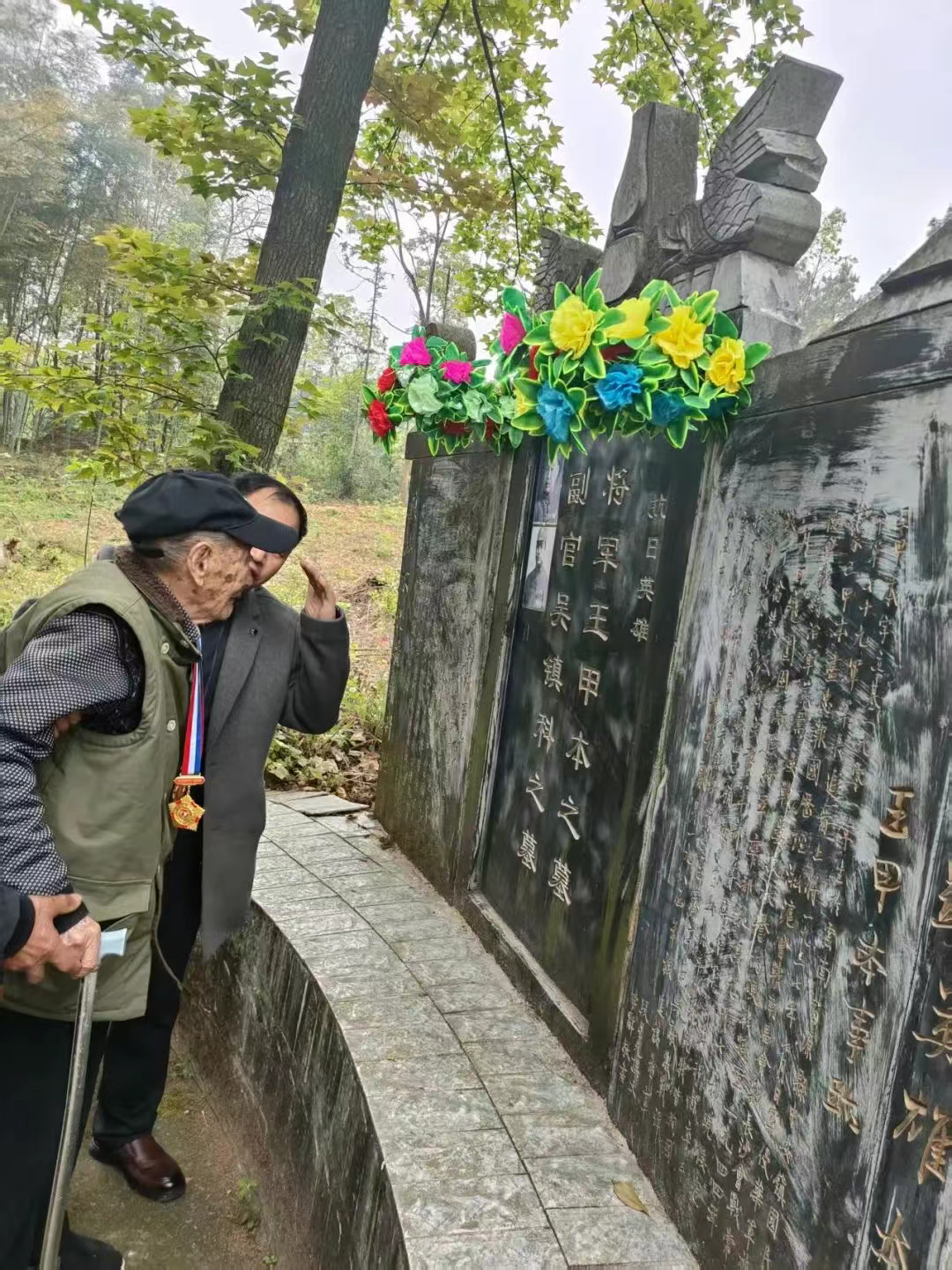 今年清明节,在子女的搀扶下,100岁的宋老跨越六百公里,颤巍巍地站在湖南王甲本将军的墓前。他俯下身,颤抖的手轻轻抚过冰冷的墓碑。指尖所及,皆是回忆——老军长铿锵的命令声、战友们年轻的脸庞、战场上震天的喊杀与硝烟……那一刻,他仿佛又回到了和战友并肩冲锋的烽火岁月。