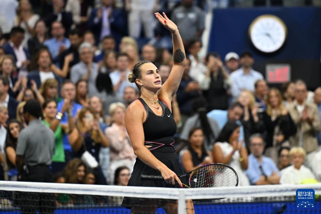 9月4日,萨巴伦卡在比赛后向观众致意。