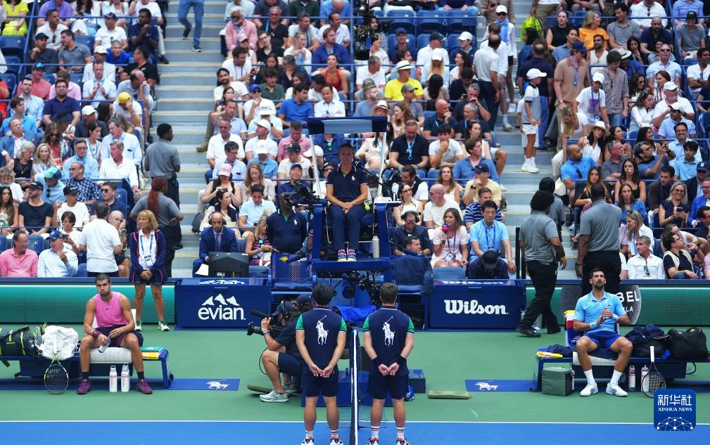 9月5日,焦科维奇(右)与阿尔卡拉斯在比赛中休息。