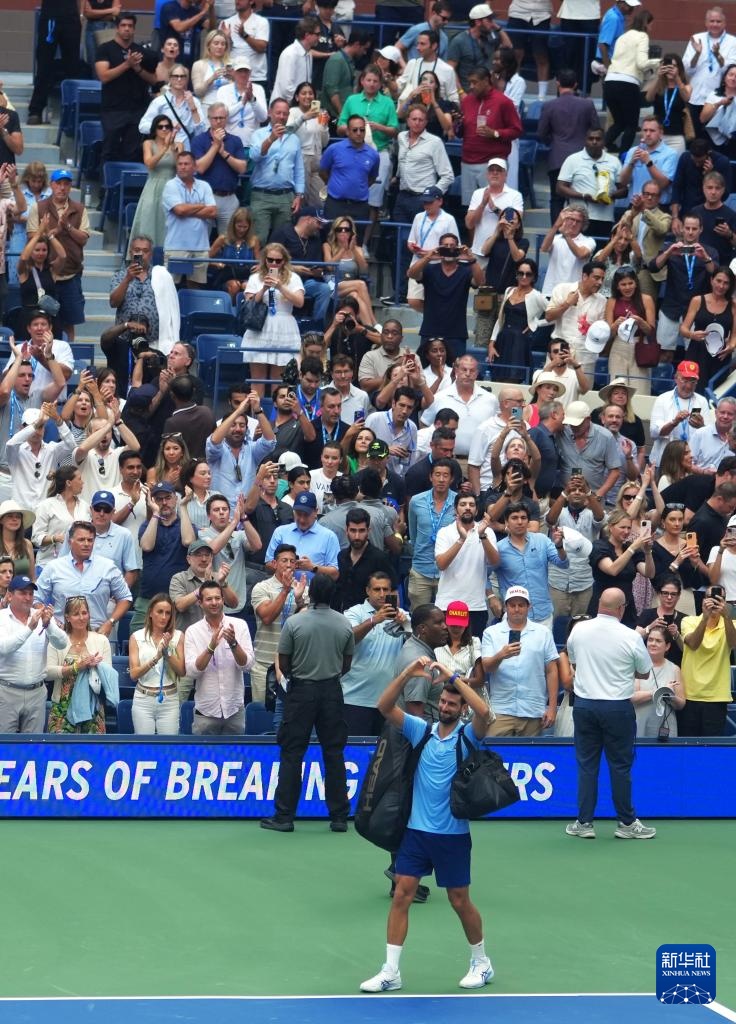 9月5日,焦科维奇(下)在比赛后向观众致意。