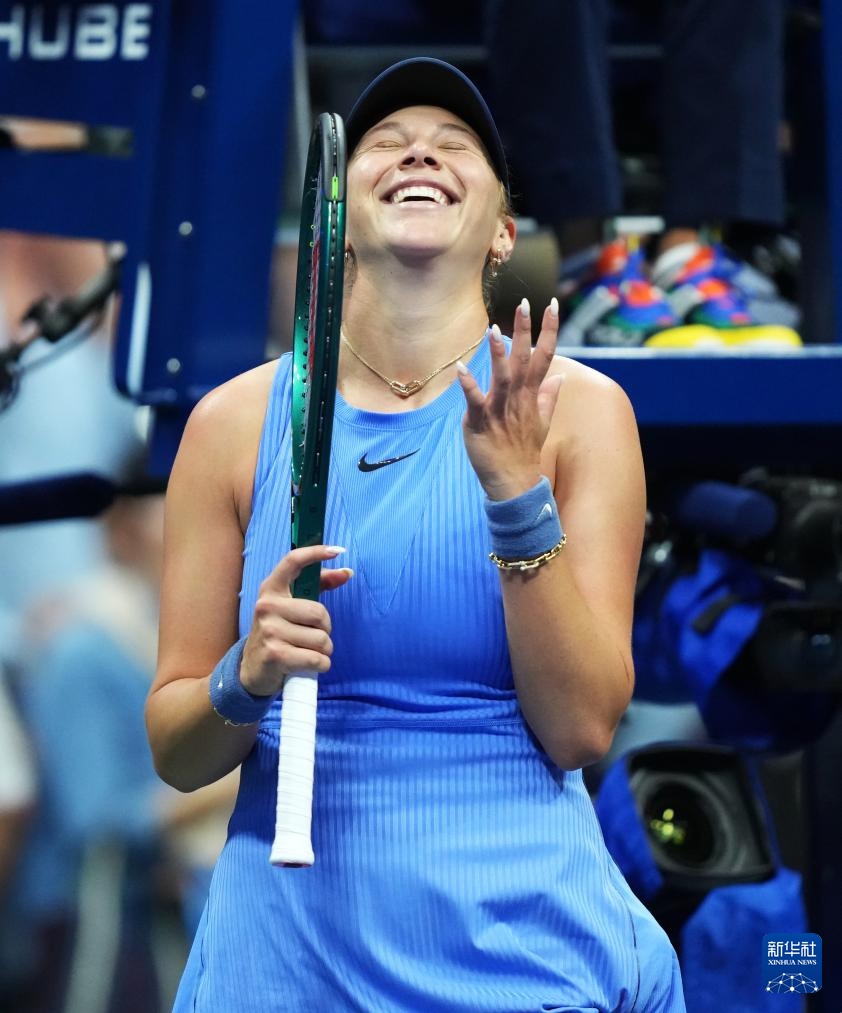 9月4日,阿尼西莫娃在比赛后庆祝胜利。