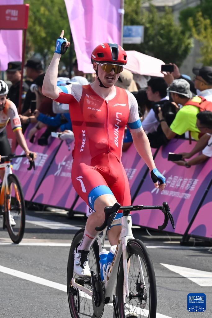 9月7日,李宁之星洲际队车手亚历山大·萨尔比(前)在冲线后。最终,他获得本赛段冠军。