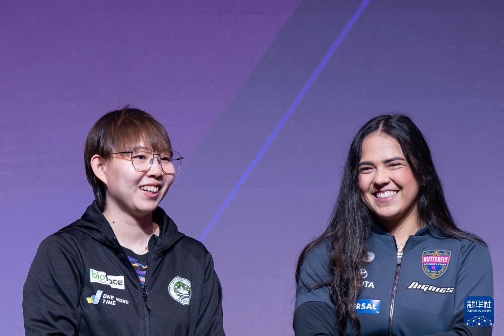 9月7日,中国澳门选手朱雨玲(左)、波多黎各选手阿德里安娜·迪亚兹在抽签仪式上。