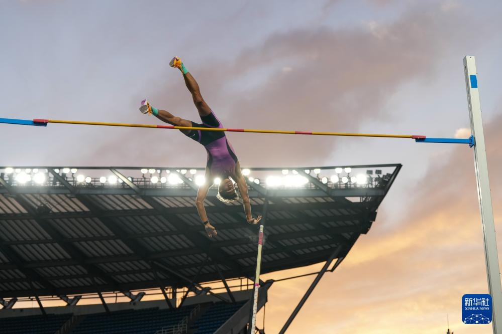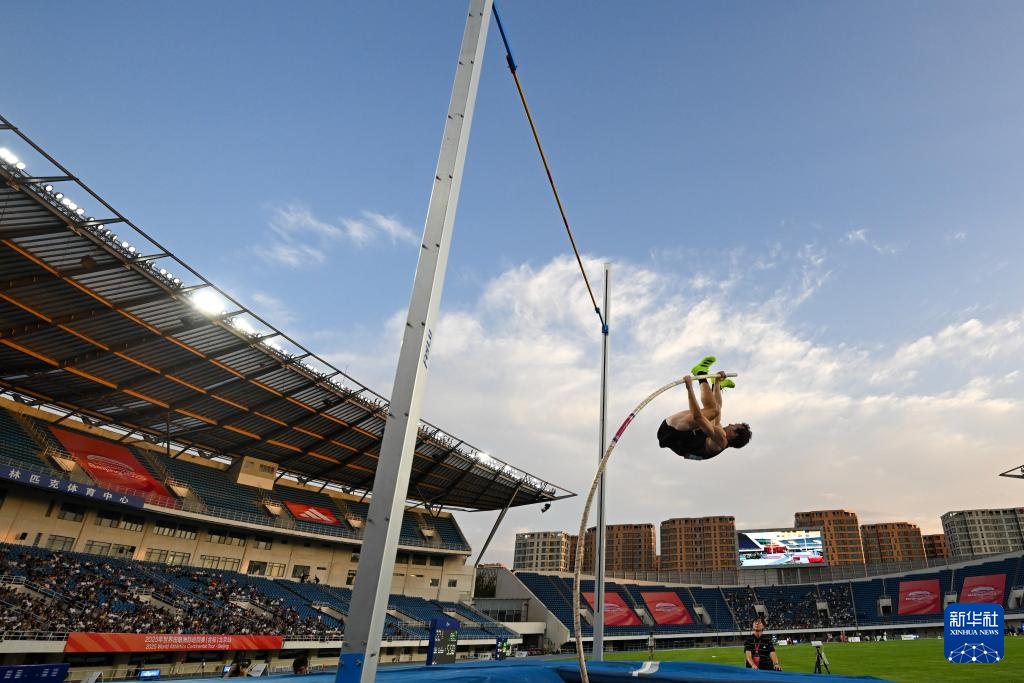 当日,2025年世界田联洲际巡回赛(金标)北京站男子撑杆跳高比赛在北京举行。