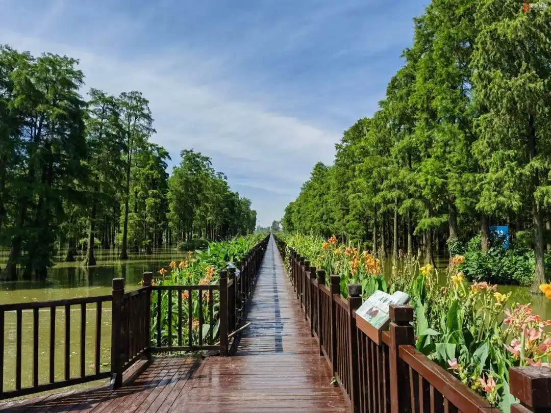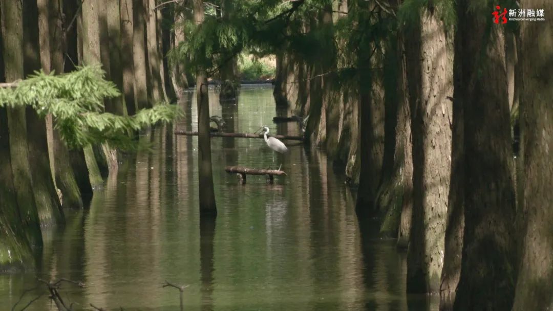 涨渡湖湿地位于新洲区南端,因“涨水为渡,落水为湖”而得名。湿地中的一片池杉林,形成了独特的“水上森林”景观,被誉为武汉的“绿野仙踪”。