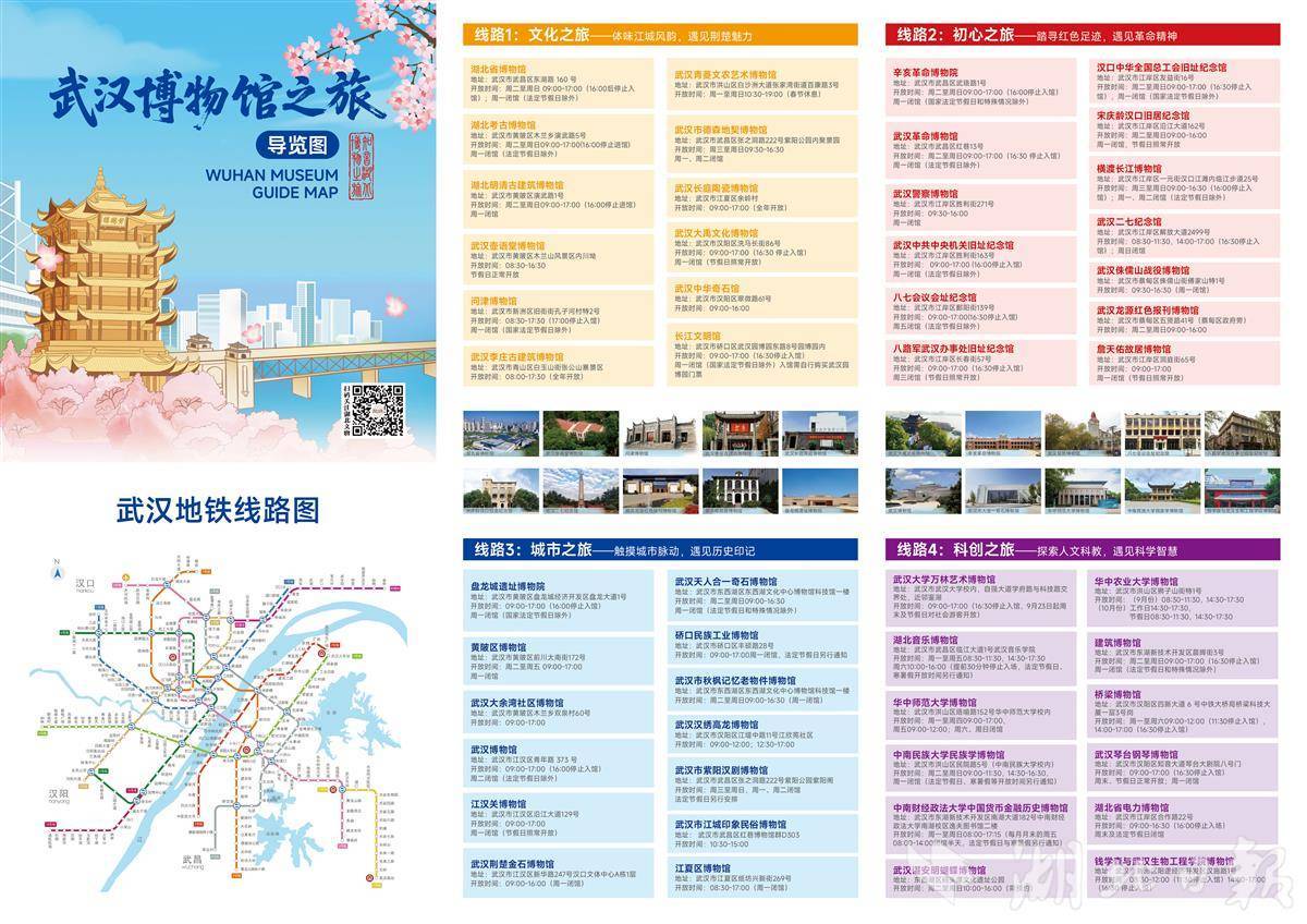 活动正式发布了“武汉博物馆之旅”地图与参观护照,为市民游客提供实用的“文博寻宝指南”。分别推出文化之旅、初心之旅、城市之旅、科创之旅等四条主题打卡线路,覆盖武汉50家博物馆,不仅串联起湖北省博物馆、长江文明馆、盘龙城遗址博物院、辛亥革命博物院等武汉知名文博地标,更将市内的中小博物馆纳入文旅版图,助力其独特的“宝藏故事”走进大众视野,推动武汉文博圈“百花齐放”“各美其美”。