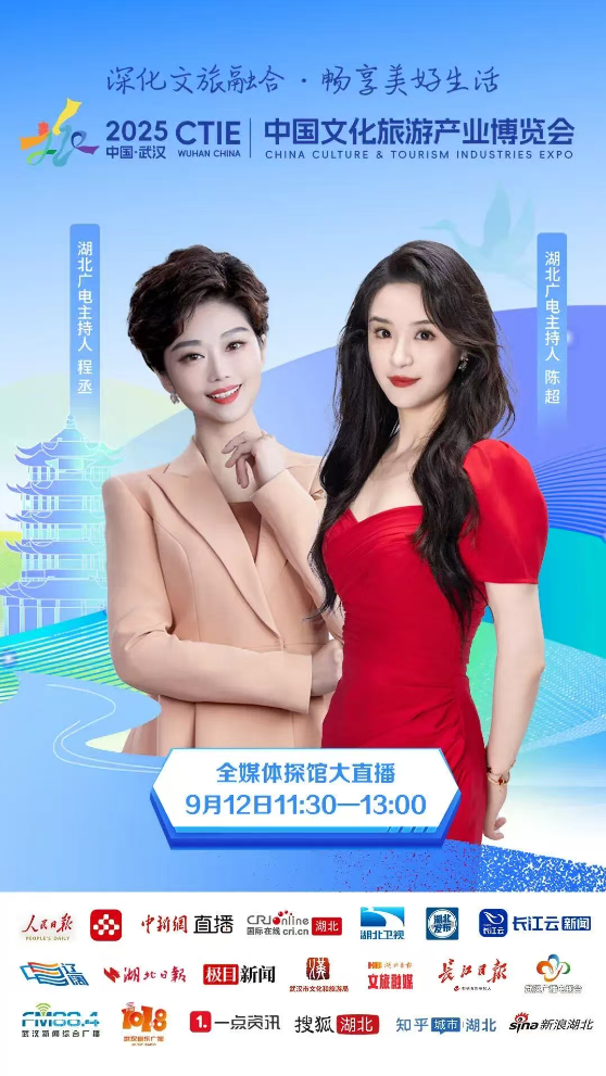 9月12日-14日,2025中国文化旅游产业博览会将在武汉国际博览中心举行。4万平米的室外展区展示以“河山添锦绣”为主题的文旅IP花车矩阵,6万平米的室内展馆则集中展现文旅新业态、新场景、新产品。现场有哪些好看的和好玩的?9月12日11:30—13:00,2025中国文化旅游产业博览会全媒体探馆大直播,带您提前探馆。