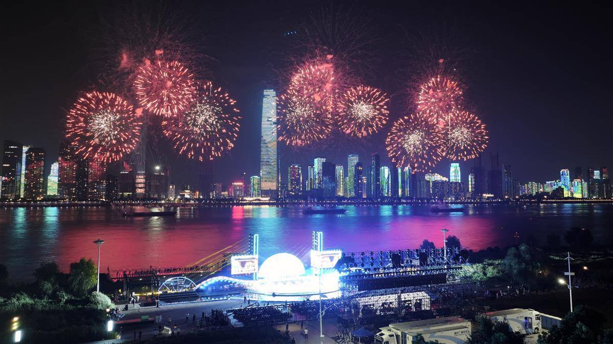 本次彩排的高潮部分,当属美轮美奂的烟花表演。绚烂的烟火接续点亮长江夜空,宛如精心绘制的巨型画卷。七彩的烟花在如墨的江天背景中轰然绽放,金色的火花如瀑布倾泻,银色的轨迹似流星划过,形态各异的花朵在震彻心灵的巨响后竞相盛放,瞬间点亮城市的轮廓线。