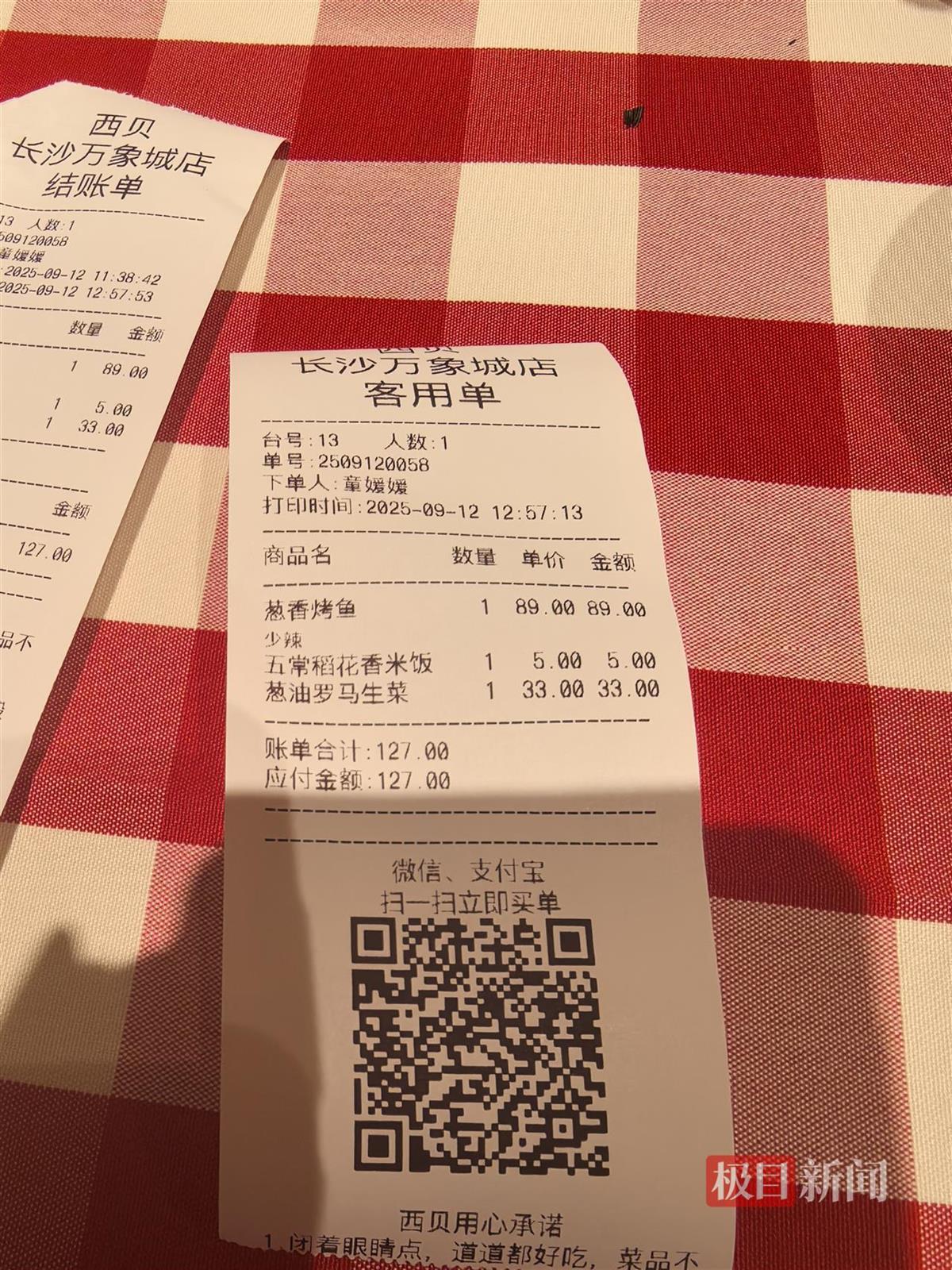 连日来,罗永浩与西贝就预制菜一事争论不休。9月12日中午,极目新闻记者来到西贝长沙万象城店,以顾客身份,当场点了罗永浩同款菜单中的葱香烤鱼和葱油罗马生菜。
