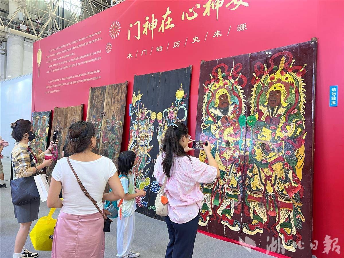 湖北日报讯(记者黄洁如、通讯员邱敏、林思雨)在2025中国文化旅游产业博览会A1馆国潮文创展区内,来自武汉市东西湖区慈惠街道的“汉吉福”文化企业展位前人头攒动。一位小朋友拉着妈妈的手,指着门神说:“这个将军好威风!”引来阵阵笑声。