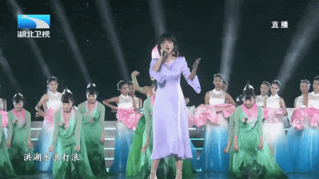 一顶巨大的翠绿荷叶在《洪湖水浪打浪》的歌唱中徐徐铺陈于舞台之上,星星点点的白色“茉莉花”踏歌而来,仿佛让全场观众嗅得到芬芳……